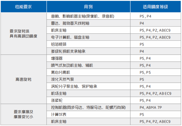 精度從0級起依次提?,對于?般?途0級已足夠,但在?于下表所?條件或場合時(shí),需要5級或更?的精度。以上的精度等級雖然是以ISO標(biāo)準(zhǔn)為基礎(chǔ)